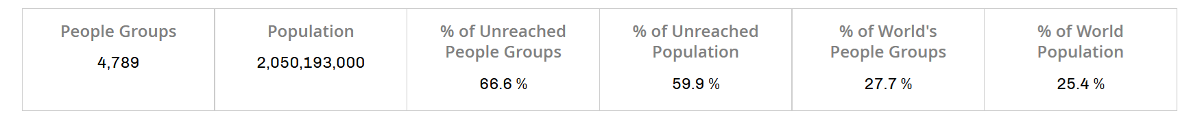 Source: Joshua Project. Go here for the most recently updated numbers.